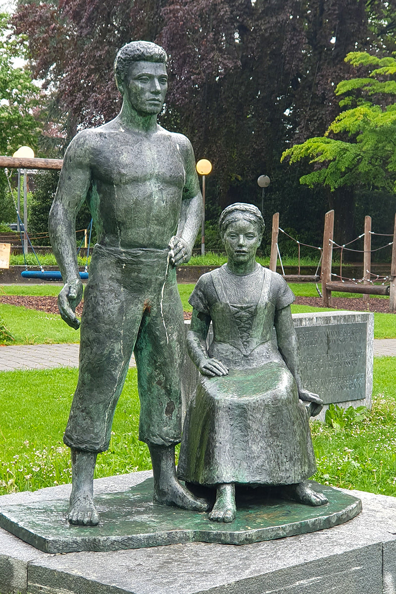 Skulptur «Dursli und Babeli» von Fritz Flury (1920–1986) im Stadtpark beim Parktheater. Die Geschichte einer unglückliche Liebe mit Söldnerdienst in Flandern hat Beethoven zu «Sechs Variationen über ein Schweizer Lied» inspiriert. Foto: DvB